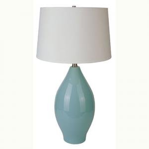 28 Blue Ceramic Table Lamp by Ore International Inc.Fun and fashionable, this table lamp will add a splash of color to a room. The gourd-shaped ceramic base is finished in sky blue, set off with a white drum shade. A three-way socket lets you control your lighting level.28 Ceramic Table Lamp Features: Gourd-shaped ceramic base