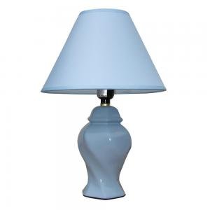 Blue Ceramic Table Lamp by Ore International Inc.The bold color and contoured base of this table lamp add a decorative element to any room. The ceramic base is topped with a coordinating blue linen shade.Blue Ceramic Table Lamp Features: Contoured ceramic base in blueBlue linen shadeUses a stand
