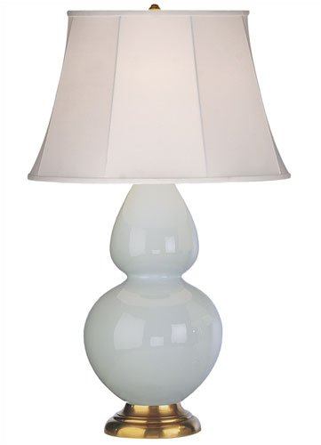 See more technical detailsBuy Robert Abbey 1666 Double Gourd Table Lamp in Baby Blue Glazed Ceramic with Antique Natural Brass Base & Ivory Silk Stretched Fabric Shade Now