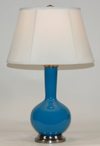 - Long Neck Bottle Shape Ceramic Table Lamp- Marine Blue Ceramic with Brushed Metal Mountings